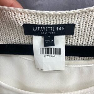 Lafayette 148 New York Layered Cotton and Silk Oversized V-Neck Sweater Size Medium