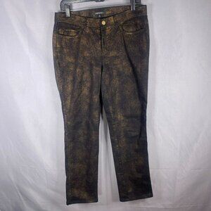Lafayette 148 Pants Womens 10 Black Gold Shimmer Straight Leg Stretch Je…