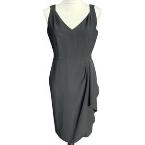 Lafayette 148 Petite Black Pleated Ruffle Crossed Shoulder Sleeveless Dress - 4P