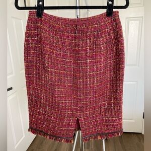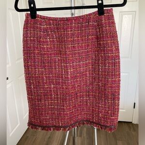 Lafayette 148 Petite Tweed Wool Cotton Red Pink Orange Multicolor skirt 8 or 8P