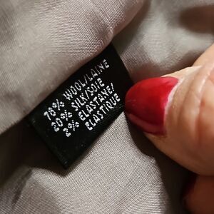 Lafayette 148 Pewter with baby blue pinstripes blazer jacket, one button front closure, wool/silk blend, size 8. Excellent pre loved condition, measurements in pics, smoke free home, ships next day. Bundle and Save!