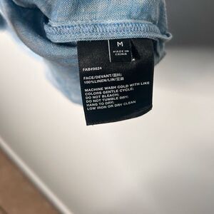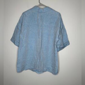 Size Medium. Excellent condition. Retails: $398. 100% Linen. Open shirt collar with front half placket, wide sleeves, and linen fabrication. Open shirt collar Three-quarter sleeves Pullover styling Side slits Back yoke with pleat Linen Lining: Cotton Machine wash Imported SIZE & FIT About 28" from shoulder to hem
