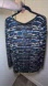 lafayette 148 knit top, pleated back blouse, blue black textured top, long sleeve print top size large, viscose knit top, relaxed fit boutique top
