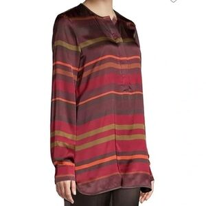 Lafayette 148 Prisha Autumn Sheen Rust Stripe Tunic Blouse Size Small