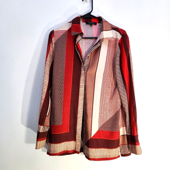 Lafayette 148 Red and Brown Geometric Patterned Shirt Sze Small