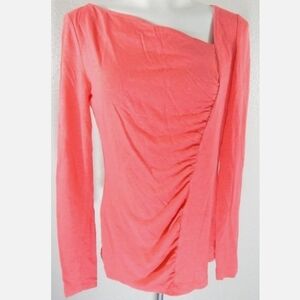 Item: Women's Pink Ruched Asymmetrical Long Sleeve Linen Jersey Top