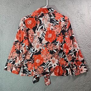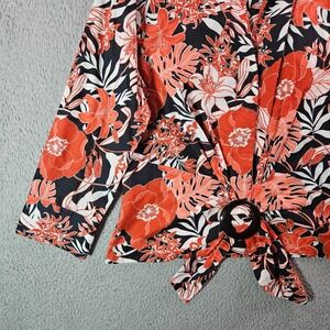 Lafayette 148 Shirt Top Women Size 8 Button Up Floral Red Black White Cotton