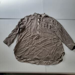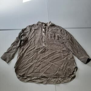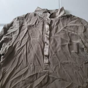 Lafayette 148 Shirt Womens Large Taupe 100% Silk Long Sleeve Button Pullover Top