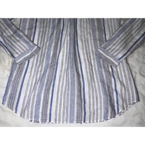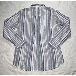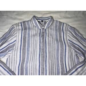 Lafayette 148 Shirt Women's Size S Blue Striped Button Up Long Sleeve 100% Linen