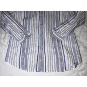 Lafayette 148 Shirt Women's Size S Blue Striped Button Up Long Sleeve 100% Linen.