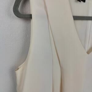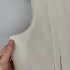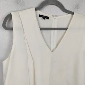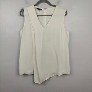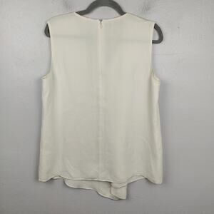 Lafayette 148 Silk Crepe Top Womens Medium Creme V-Neck Draped Asymmetrical