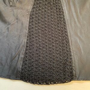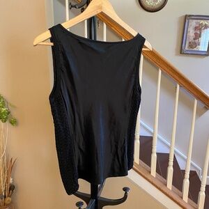 Lafayette 148 New York. black Silk Camisole Tank Top with Rayon Crochet sides. Excellent pre-owned condition (EUC). No flaws, stains, rips or defects.