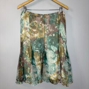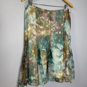 Lafayette 148 Silk Watercolor Floral Lined Side Zipper Skirt Ruffle Y2K Fairy