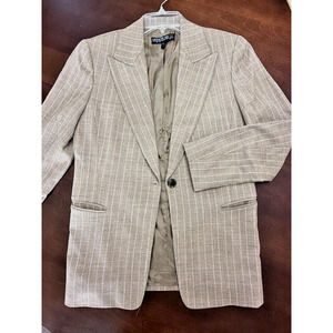 Lafayette 148 Single button Suit Blazer Jacket taupe pink pinstripes sz 10