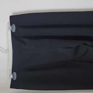 Lafayette 148 Size 10 "Menswear" Style Black Dress Pants / Trousers, NEW w/o Tag. Plastic Tag still attached. Front Zipper with Button and Hook & Eye Closure. Flat Front, Tonal Stitching. Wide Leg. Virgin Wool / Elastane Blend. Please refer to measurements in photos to ensure proper fit.
