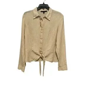 Lafayette 148 Size 12 100% Linen Dark Cream Tie Front Shirt Top Blouse #T4-3