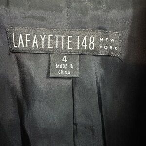 Lafayette 148 Size 4 Wool Silk Pant Suit Black White Career Jacket 2 Piece