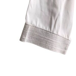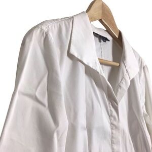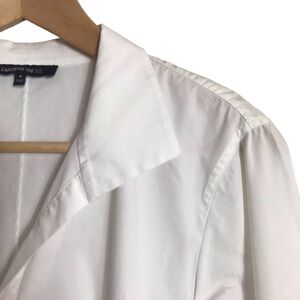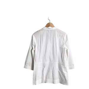 Lafayette 148 Size 8 White Cotton Textured Trim Peplum Button Up Shirt Classic