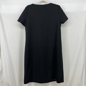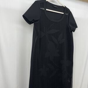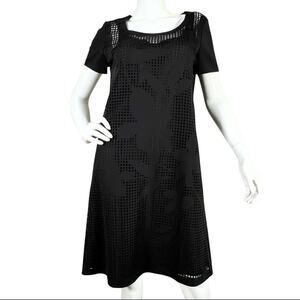 Lafayette 148 Size L Black Floral Mesh Shift Dress Overlay Short Sleeve Solid