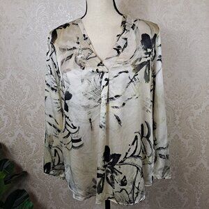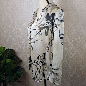 Lafayette 148 Size Small Silk Cream Blouse Long Sleeve Abstract Floral Vneck