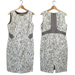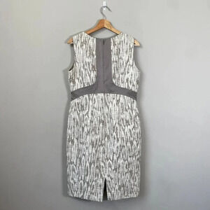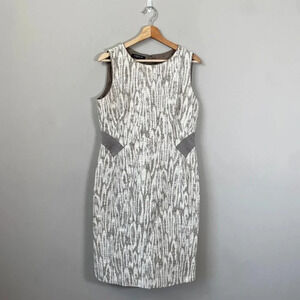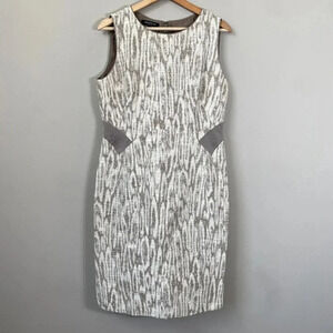 Lafayette 148 Sleeveless Patterned Sheath Dress Women's Size 8 Cream Tan Career
