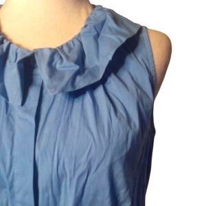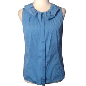Lafayette 148 Sleeveless Ruffle Neck Blouse Button Front Cotton Blend