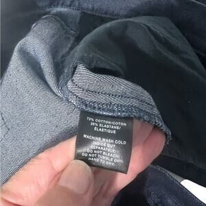 DETAILS: Lafayette 148 dark straight leg mid-rise jeans.