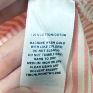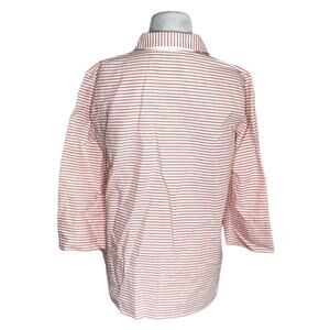 100% Cotton. Button down shirt. Pink striped print. 3/4 sleeves. Perfect workwear/business casual top.