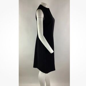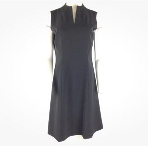 Lafayette 148 Sz 6 Fit & Flare Dress Black Polyester High V Neck Business