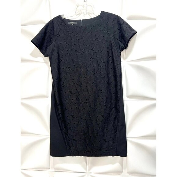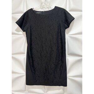 Lafayette 148 Sz P / XS Solid Black Embroidered Stretch Oversized Shift Dress