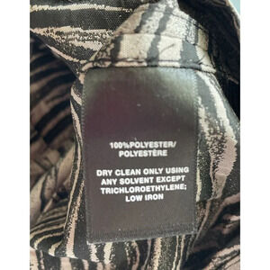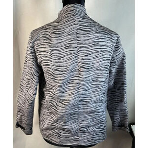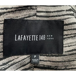 This Lafayette 148 New York jacket is a stylish addition to any wardrobe, featuring a striking tan and black animal print tiger pattern on a lightweight polyester outer shell. The jacket has a full zip closure and is designed with long sleeves. It's perfect for a variety of occasions, including travel, casual outings, and business meetings.