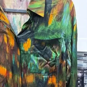 Lafayette 148 Tess Abstract long sleeve button down blouse