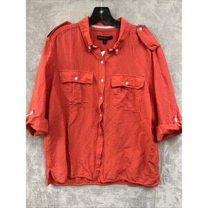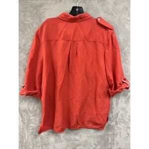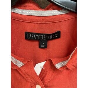 Lafayette 148 Top Womens 14 Bright Orange Linen Rayon Button Up 3/4 Sleeve