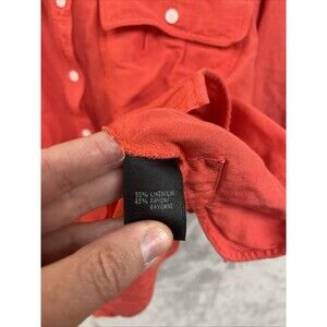Lafayette 148 Top Women’s 14 Bright Orange Linen Rayon Button Up 3/4 Sleeve