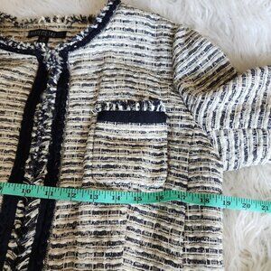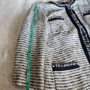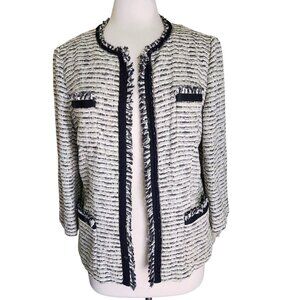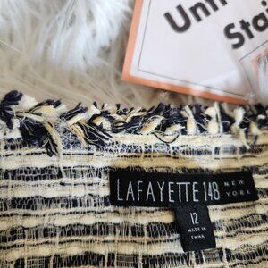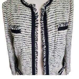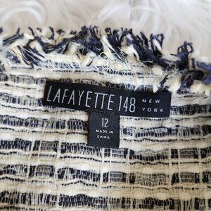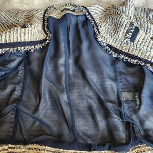Lafayette 148 Tweed Blazer Women's 12 Metallic Shimmer Navy Blue Silver Career
