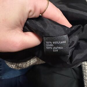 Lafayette 148 Tweed Leather Collar Jacket Size 14. Gorgeous gently used condition jacket with removable 100% leather collar and 100% wool body. Light beige and black. Perfect fall jacket.