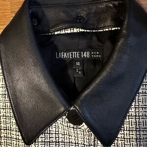 Lafayette 148 Tweed Leather Collar Jacket Size 14