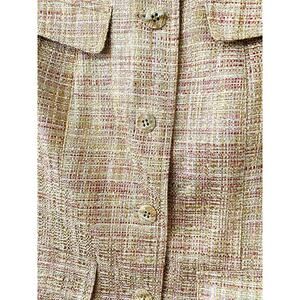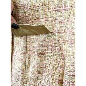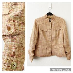 Lafayette 148 Tweed Womens Pink Gold Linen Blend Short Blazer Gathered Sleeve 6