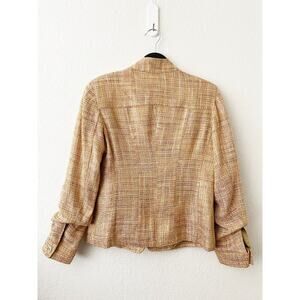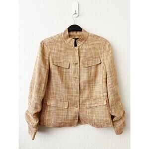 Lafayette 148 New York Women's Pink Gold Linen Blend Short Blazer Gathered Sleeve Tweed Woven