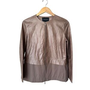 Lafayette 148 Two Tone Taupe Leather & Cotton Jacket Size S