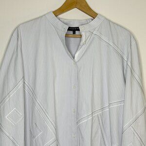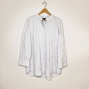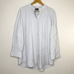 Lafayette 148 White Button Down Shirt XL Cotton Blend Silver Detail Office Luxury