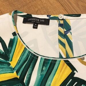 Lafayette 148 White Palmer Palm Leaf Sleeveless Shift Dress with Pockets M