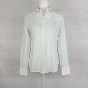 Lafayette 148 White Stretch Cotton Button Up Shirt Size 4 Preppy Long Sleeves