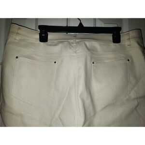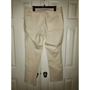 The product is a pair of Lafayette 148 New York cream dress pants for women in size 16. These straight-leg pants are made of denim fabric in a cream color, making them a versatile and stylish addition to any wardrobe. Perfect for both casual and formal occasions, these pants offer a sophisticated and timeless look that can be dressed up or down to suit any event.