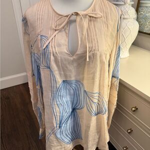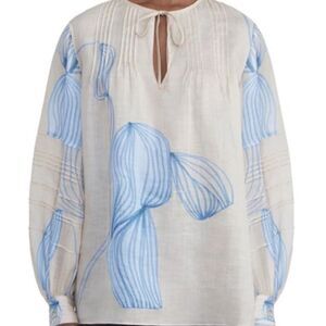 Lafayette 148 Winding Leaf Print Gemma Cloth Blouse In Dune-W1