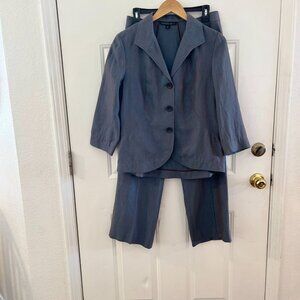 Lafayette 148 New York Woman's Career Blue Iridescent Metallic Linen Blazer Set Sz 6