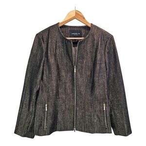 Lafayette 148 Womens Designer Metallic Bronze Zip Front Jacket 12 Acadamia Chic