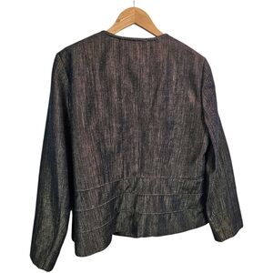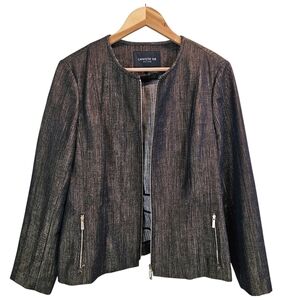 Lafayette 148 jacket, metallic bronze blazer, designer women’s jacket, size 14 jacket, zip-front blazer, trendy office wear, luxury fashion, chic outerwear, women’s designer clothing, statement jacket.