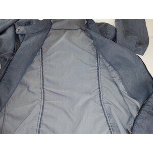 Lafayette 148 Womens Jacket Blue Ruched Utility Buckle Crew Neck Full Zip Size 8