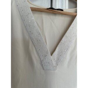 Lafayette 148 Women's LG Ivory Silk Blouse with Gold Sparkle Neckline and Side Panels